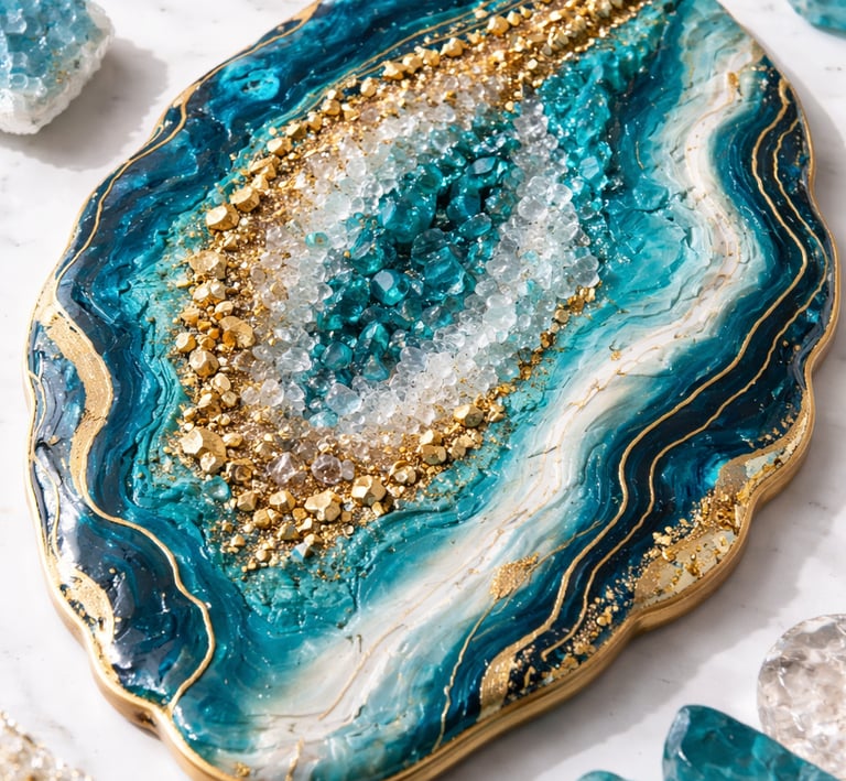 I’m Teresa Agee, an Indiana-based artist inspired by color, texture, light, and the beauty found in transformation. My work blends acrylic painting, resin, and mixed media to create pieces that feel both organic and intentional—where fluid movement meets sculptural detail. From luminous resin geodes to expressive portraits and atmospheric landscapes, each creation is designed to evoke emotion, curiosity, and a sense of connection.